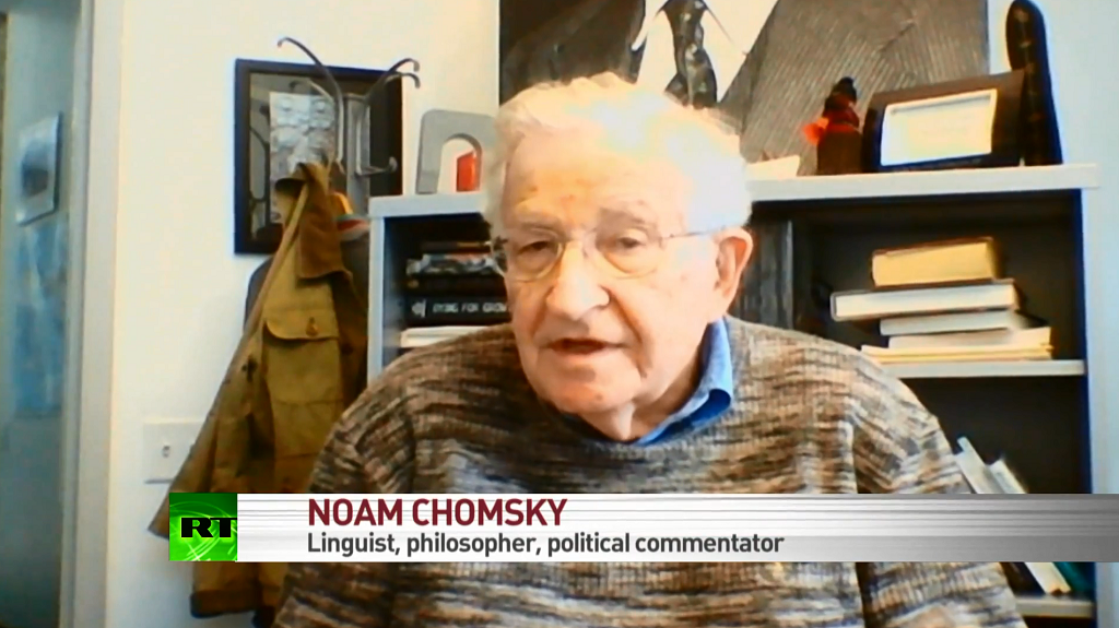 Chomsky passou a discutir com RT o ex-contratado da NSA e denunciante Edward Snowden, e os EUA "sempre em expansão de espionagem global que estão a ter um impacto perigoso na população nacional e está inspirando outros governos em todo o mundo a fazer o mesmo.