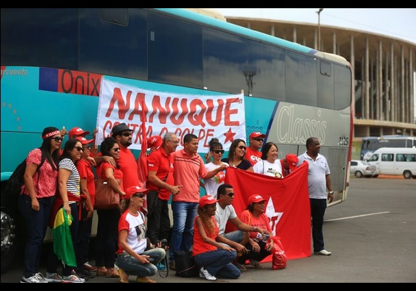 Um dos organizadores destacou que a distribuição de bandeiras e água é comum. Para ele, o importante é que as pessoas estão participando espontaneamente. É o caso de Sérgio Borges, 33 anos, que veio de Campo dos Goytacazes (RJ) para participar do ato. “Nossa manifestação é a favor da democracia e contra a tentativa de golpe articulada por um setor que não aceita a derrota nas urnas nas eleições de 2014. Admito que o governo precisa rever algumas políticas, mas a democracia deve ser respeitada em primeiro lugar”, afirma.